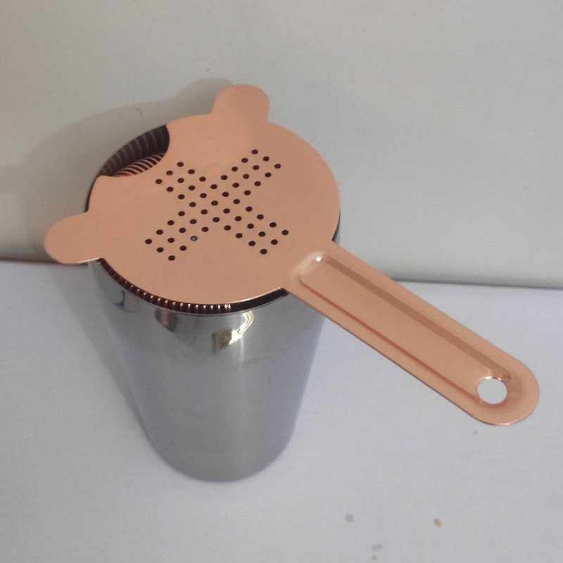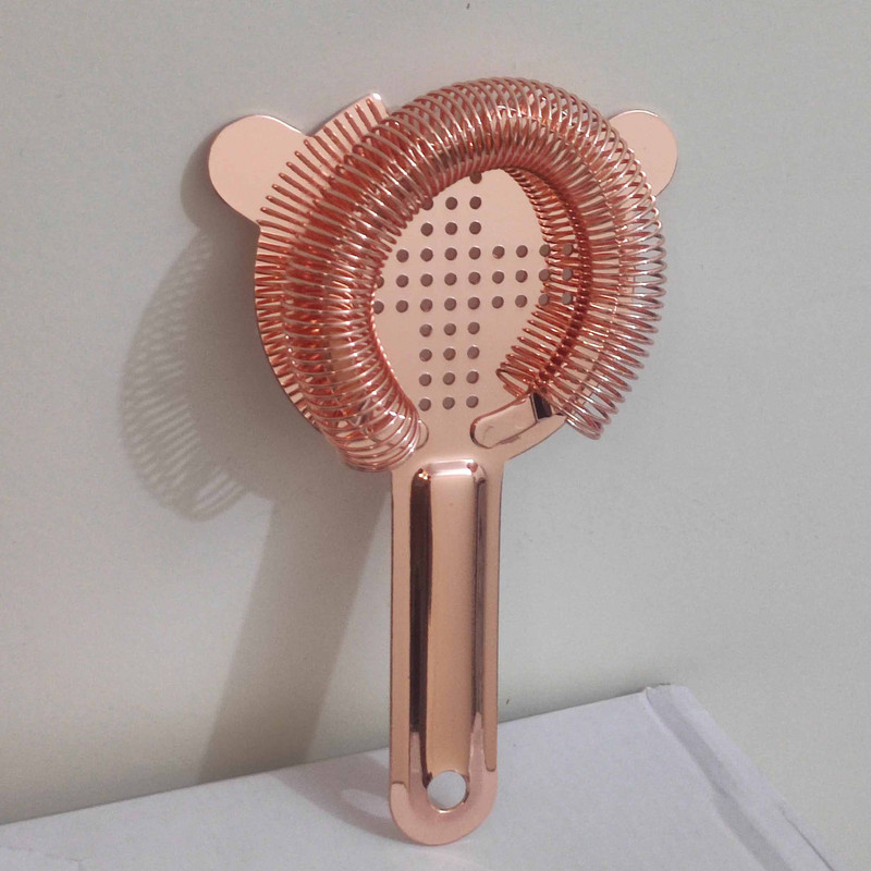 استرینر به معنای صافی است. این نوع استرینر در تهیه نوشیدنی های سرد به کار گرفته می شود. در هنگام ریختن نوشیدنی از شیکر به داخل لیوان، باید استرینر را در دهانه شیکر قرار دهید تا از ورود هسته های میوه، پوست میوه و سبزیجات و تکه های یخ به داخل لیوان جلوگیری کنید. این صافی در سه رنگ طلایی، دودی و رزگلد ساخته شده است و جنس آن استیل ضدزنگ است که در مجاورت آب یا در هنگام شستن زنگ نمی زند.