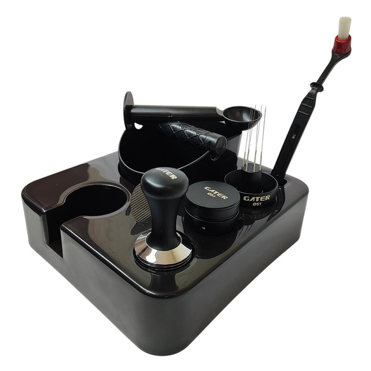 اگر به دنبال یک پکیج کامل و منظم برای دمآوری قهوه، برای سایز پرتافیلتر ۵۱ هستید، این ست همهچیز را برای شما آماده کرده است. با داشتن این مجموعه، ابزارهای ضروری باریستا همیشه در دسترس و مرتب خواهند بود. این ست شامل یک استند نگهدارنده شیک و کاربردی است که به زیبایی تمام ابزارها را در کنار هم قرار میدهد و جلوهای حرفهای به میز کار شما میبخشد. اقلام داخل ست عبارتند از: تمپر فلزی برای فشردهسازی یکنواخت پودر قهوه لولر (Leveler) جهت همسطح کردن سطح قهوه در پرتافیلتر نیدل برای پخش یکنواخت ذرات قهوه و افزایش کیفیت عصارهگیری فانل (Dosing Funnel) برای جلوگیری از ریختن پودر قهوه در هنگام ریختن داخل پرتافیلتر پاک اسکرین (Puck Screen) برای عصارهگیری یکنواختتر و جلوگیری از گرفتگی فرچه نظافت جهت تمیز کردن هدگروپ و تجهیزات ناک باکس (Knock Box) برای تخلیه راحت و سریع پودر قهوه استفادهشده همچنین به همراه این ست، یک پیمانه برای اندازهگیری دقیق پودر قهوه و یک تمپر پلاستیکی سبک نیز ارائه میشود تا در هر شرایطی ابزار مورد نیاز خود را داشته باشید. با خرید این ست، نه تنها تمامی ابزارهای ضروری برای تهیه یک اسپرسوی حرفهای را در اختیار دارید، بلکه میز کار شما مرتب، زیبا و کاملاً کاربردی خواهد بود. این محصول انتخابی عالی برای دوستداران قهوه، باریستاهای خانگی و حتی کافهها است.