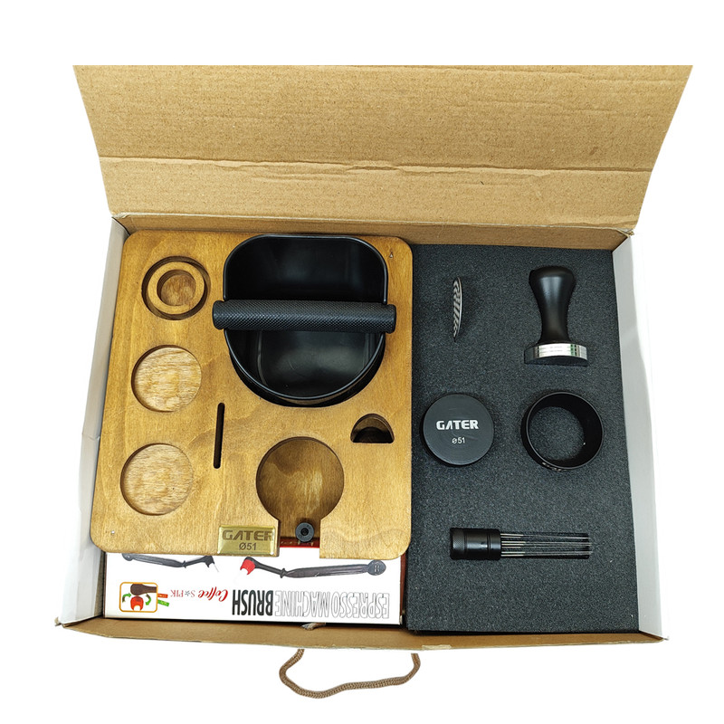 ست تجهیزات باریستا مدل Cube Box مجموعهای کامل از ابزارهای حرفهای برای آمادهسازی و سرو قهوه است. این ست با طراحی منظم و زیبا شامل استند چوبی مجهز به ناک باکس داخلی بوده که بهصورت هوشمندانه محل قرارگیری تمامی ابزارها را فراهم میکند.